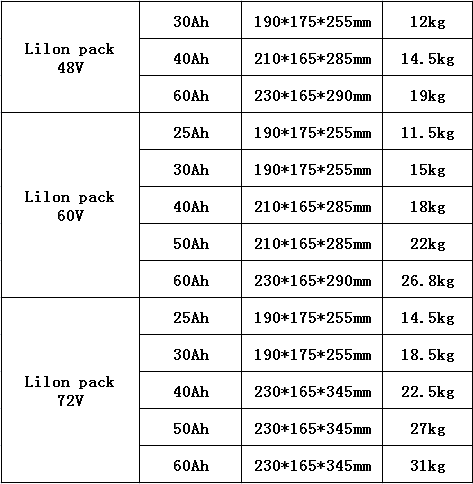 Description Power battery, conventional voltage is 48V, 60V, 72V, conventional capacity is 25Ah, 30Ah, 40Ah, 50Ah, 60Ah, support customization!